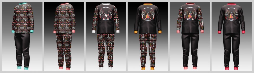 I illustrated assets to create a repeating pattern that could be used as child’s room decor and/or child’s fashion fabric. I created two variations of the repeating patterns, the first with bedsheets or child’s pajamas in mind, and the second pattern for wall paper or furniture decorations. The other images use the assets I made for the patterns and created to use on pillow cases, bedspreads, wall art, or pajama tops. Mock-up examples below.